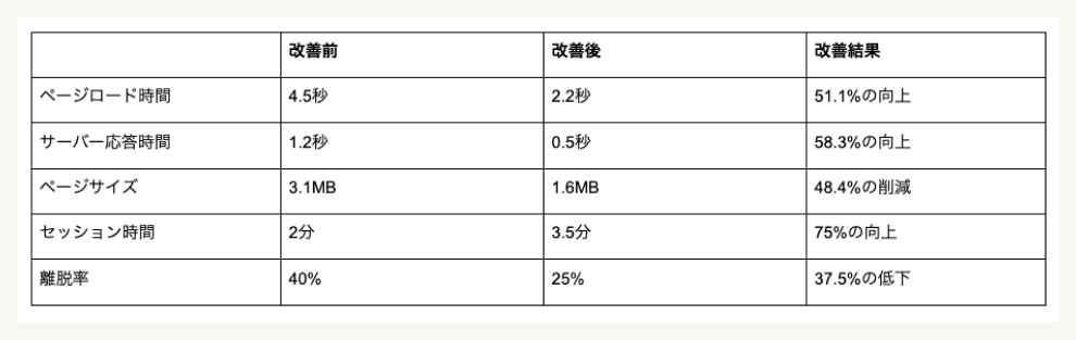画像ファイルとコードの最適化、キャッシュを利用することで表示速度が約50%向上。離脱率やコンバージョン率の低下率も大きく改善しました。
